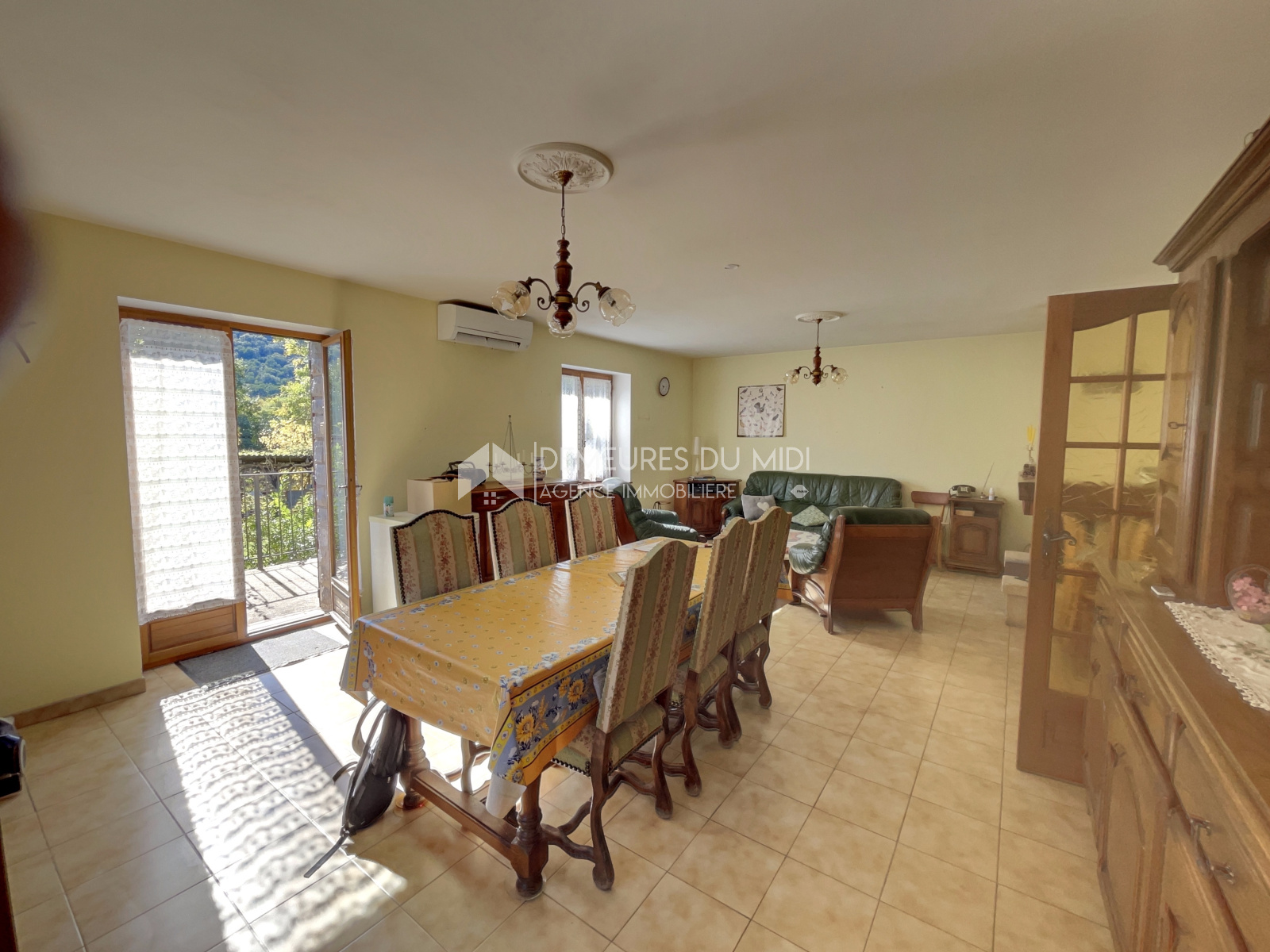 Chauffage électrique, climatisation réversible dans le salon, cheminée.