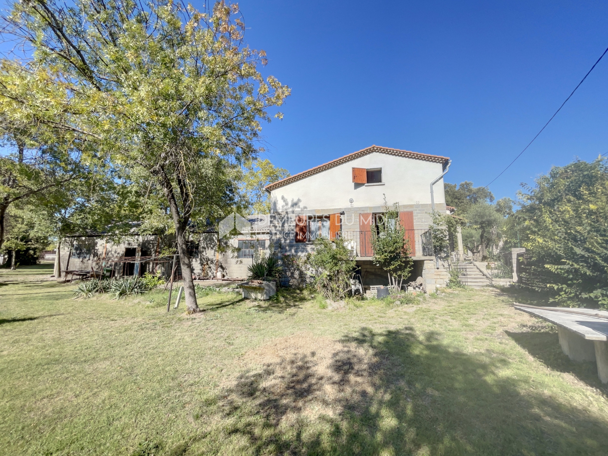 Sur un grand terrain de 2.451 m² sans vis à vis, maison 4 pièces de 112 m² habitables datant des années 1980, possédant un vaste grenier de 139 m² aménageable et un très grand garage atelier de 200 m² adjacent. La maison offre un beau séjour lumineux de 36 m², une cuisine indépendante, trois chambres de belles dimensions, une salle de bains et une buanderie. Petites annexes dans le jardin (cuisine d'été, poulailler, rangements...)